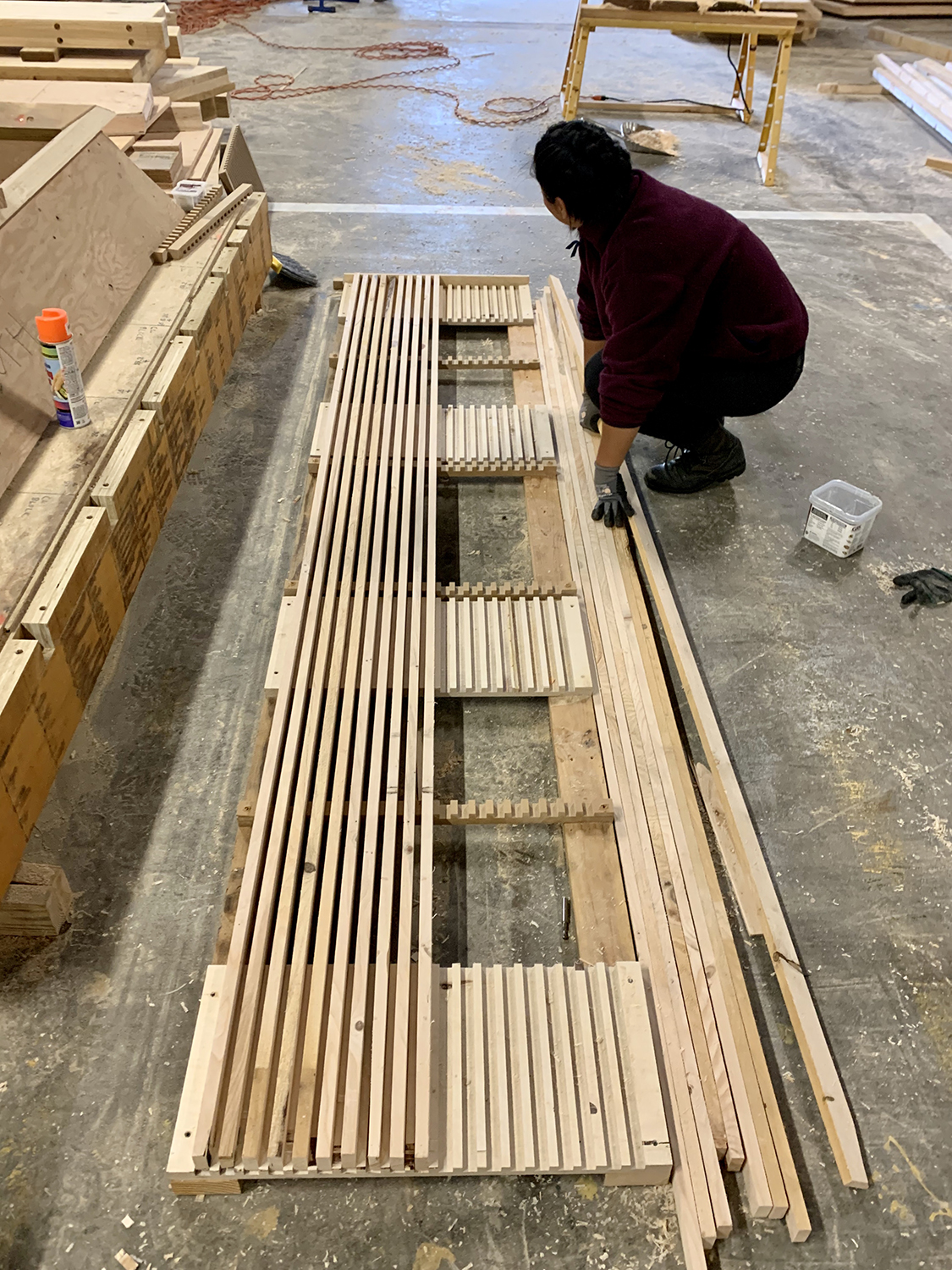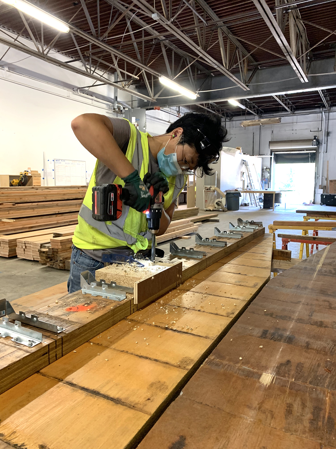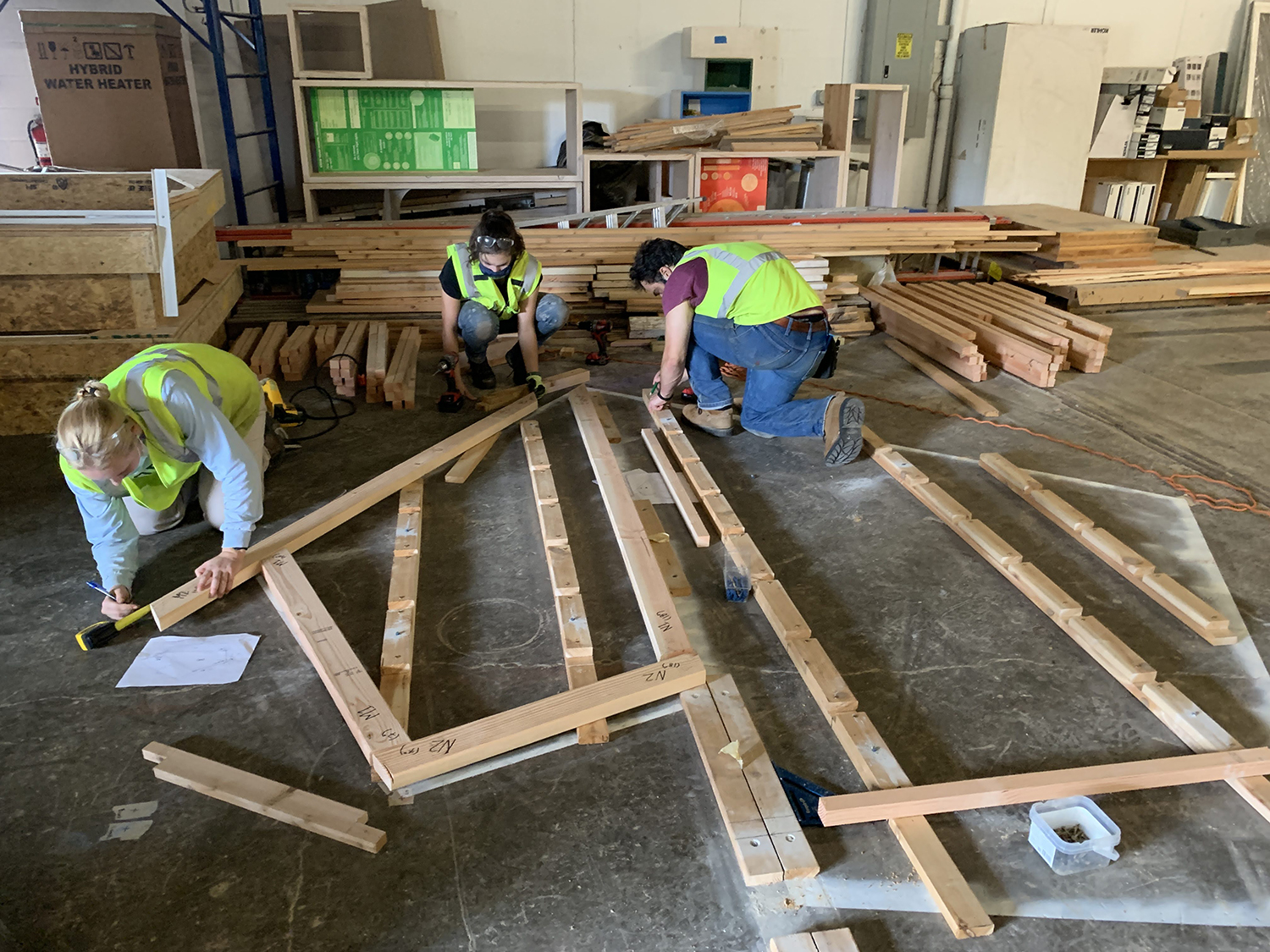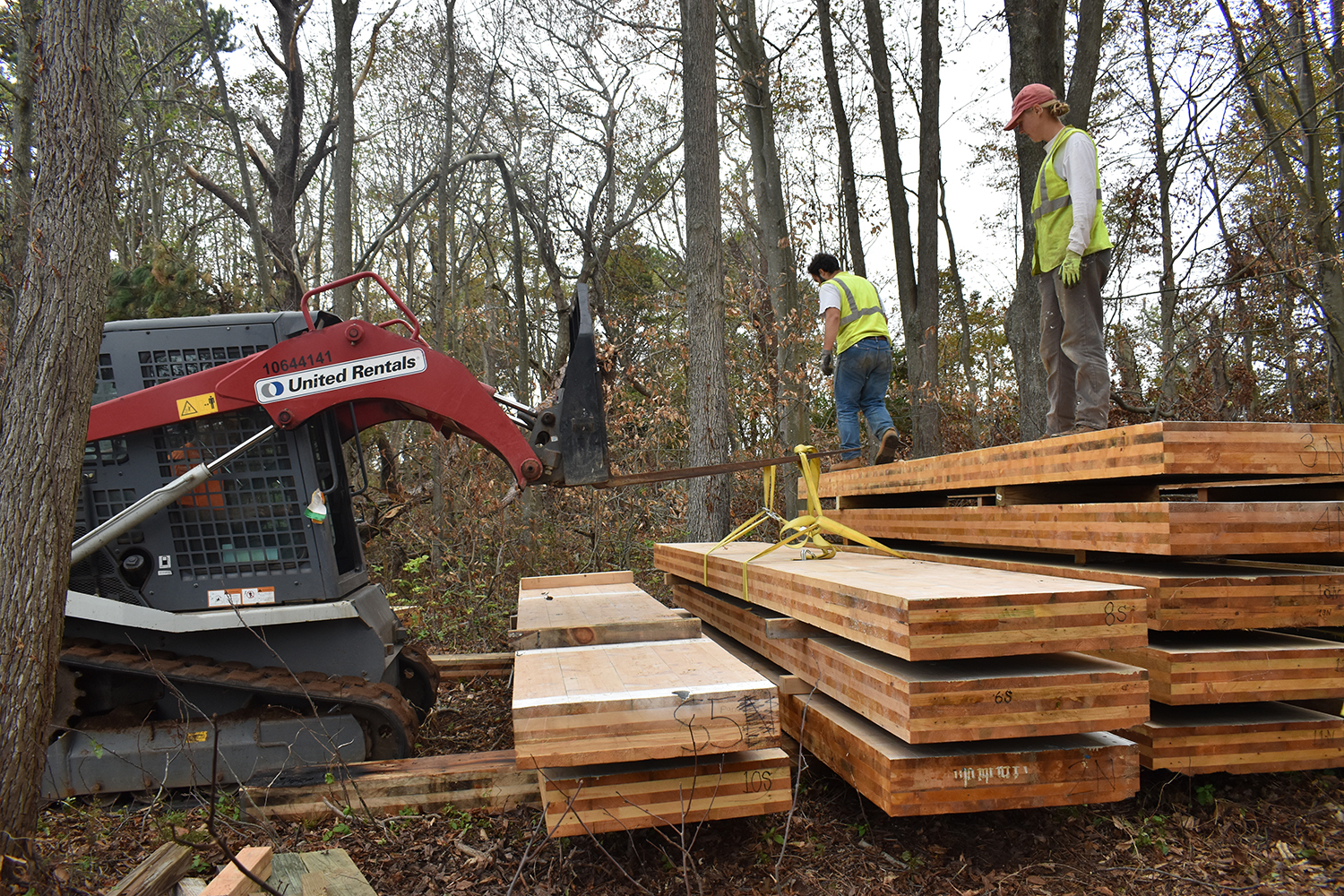 Our efforts to minimize the building’s carbon footprint go beyond it’s solar energy systems. We looked to the life-cycles of the building’s materials as opportunities for carbon sequestration. The building’s structure utilizes salvaged Cross-Laminated Timber and sassafras tree columns found on site. Finish materials include hemlock culled from a local forest and elements recycled from recent renovations at the Yale Peabody Museum of Natural History.