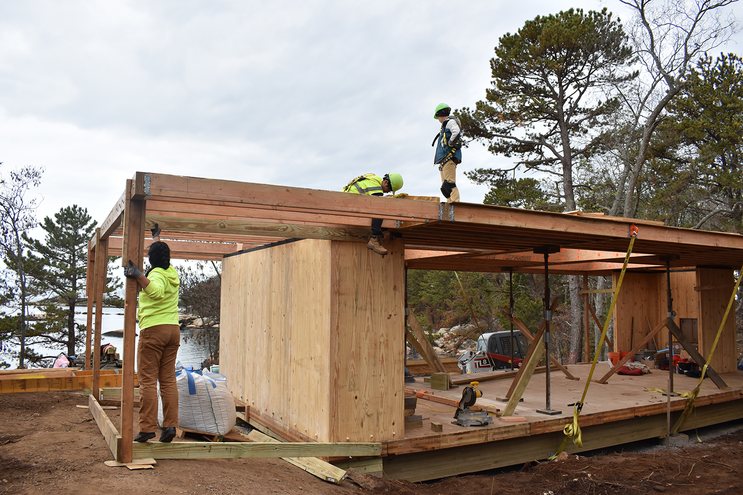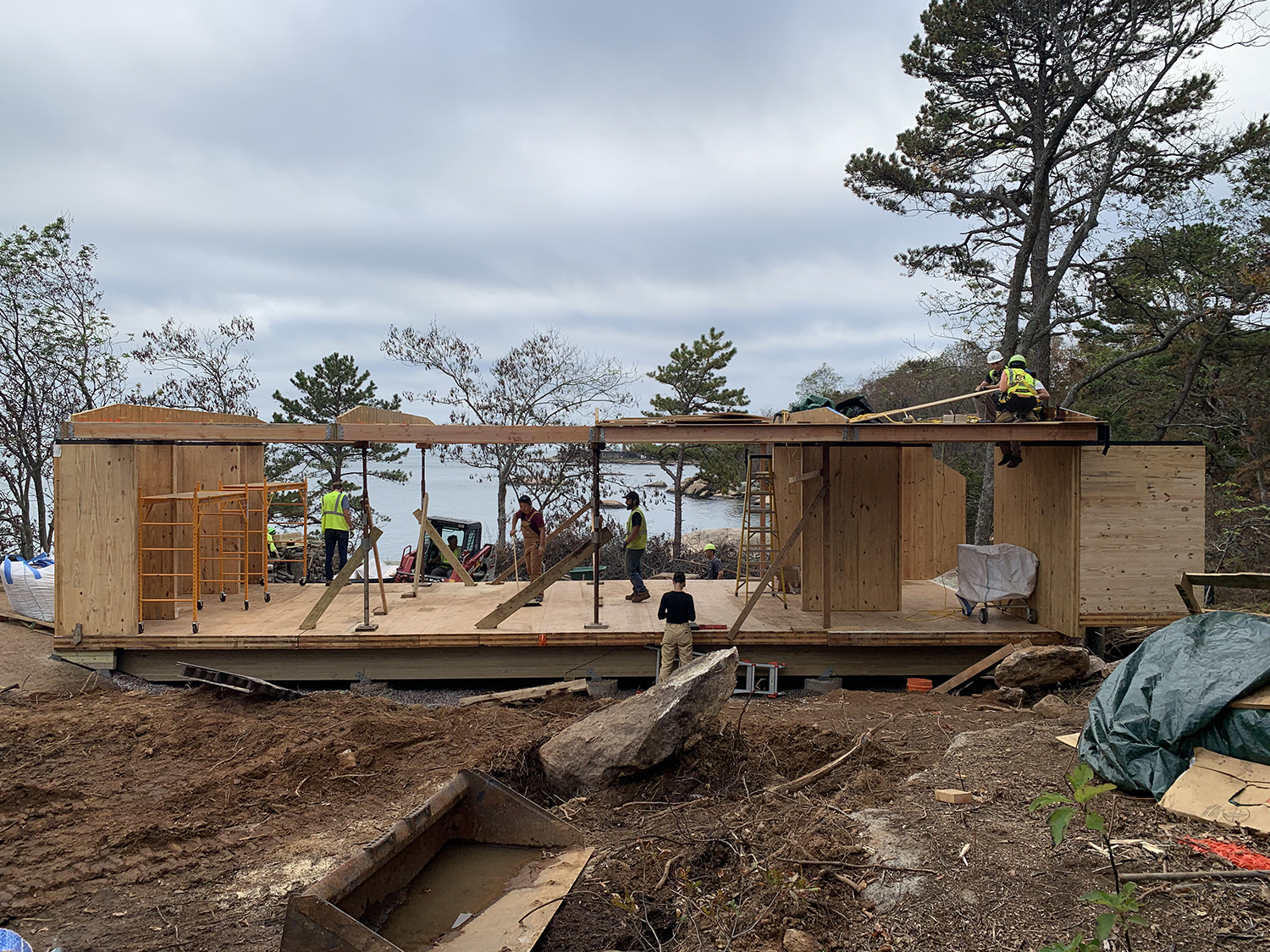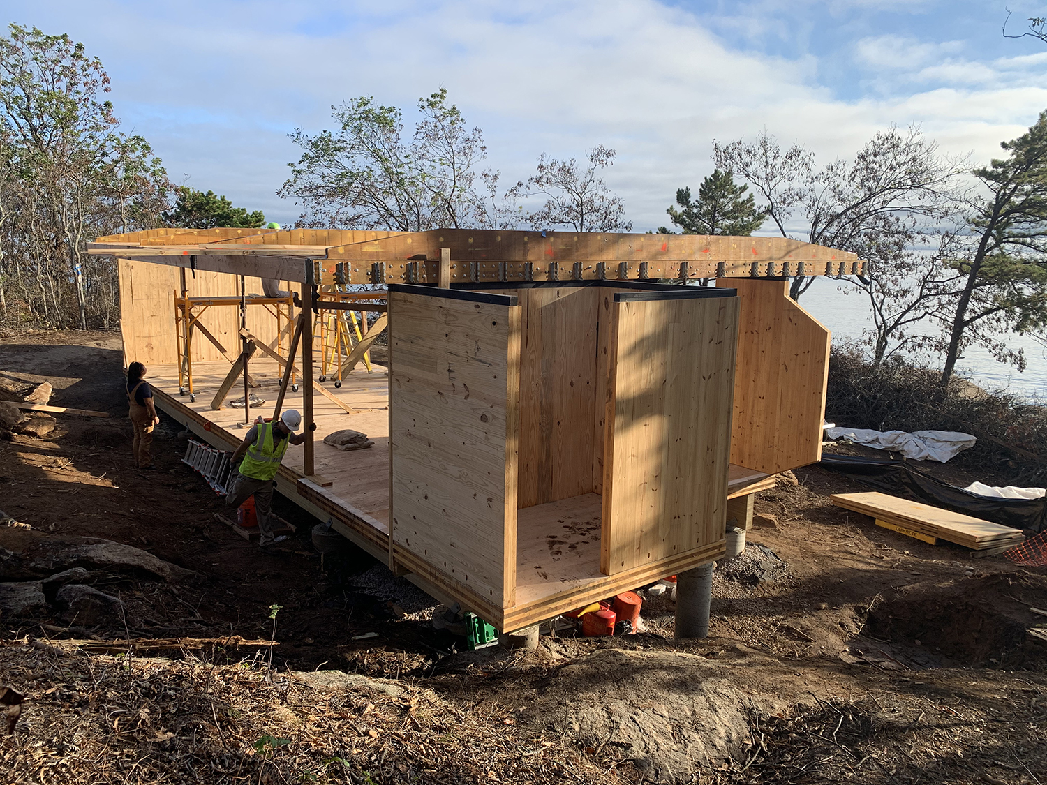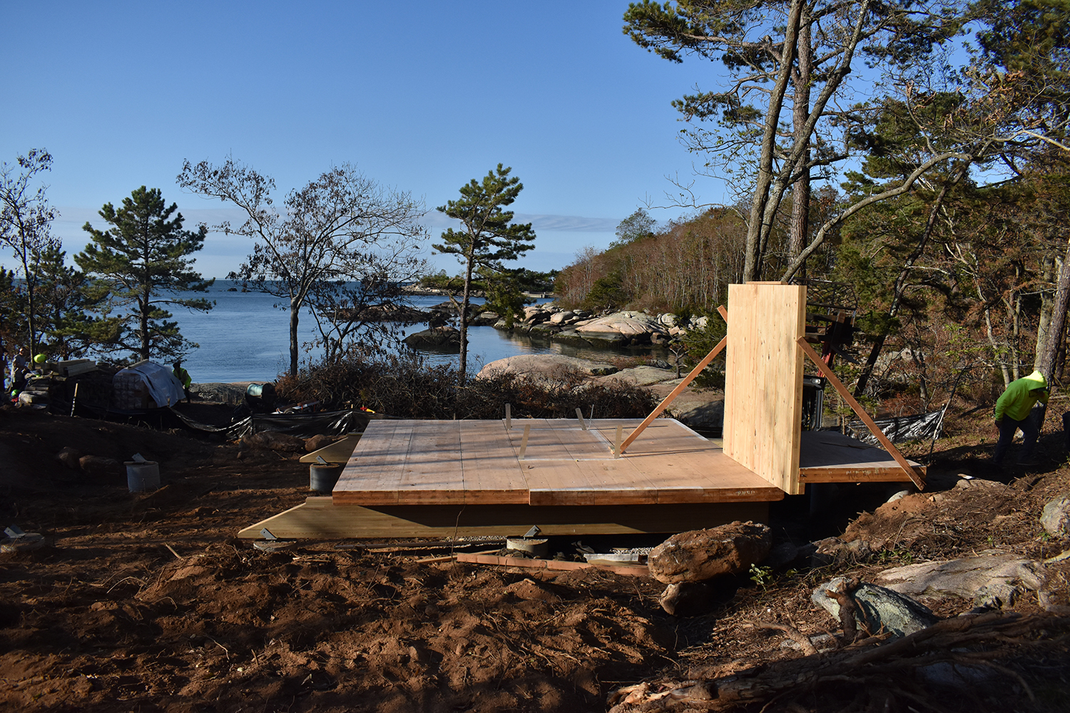 protected island in the Thimble Island archipelago, the design and construction of this teaching and coastal research center required a regenerative, sustainable approach to material sourcing, construction methodologies, and energy systems. The design and construction process moved between island and mainland—many components were prefabricated, then shipped and assembled in the field to reduce our impact on the site. The logistical challenges involved in island design led to innovation in construction details and assembly systems.