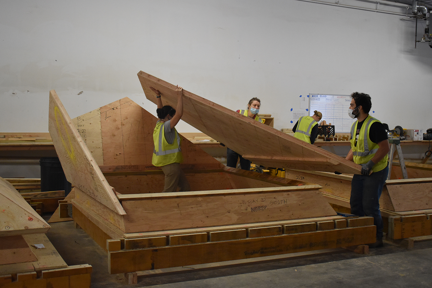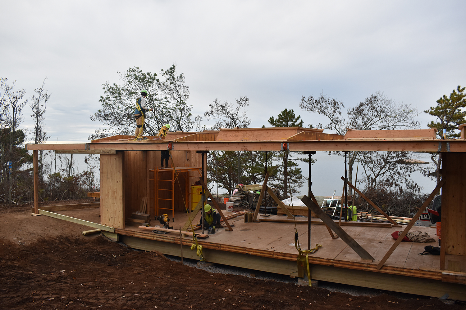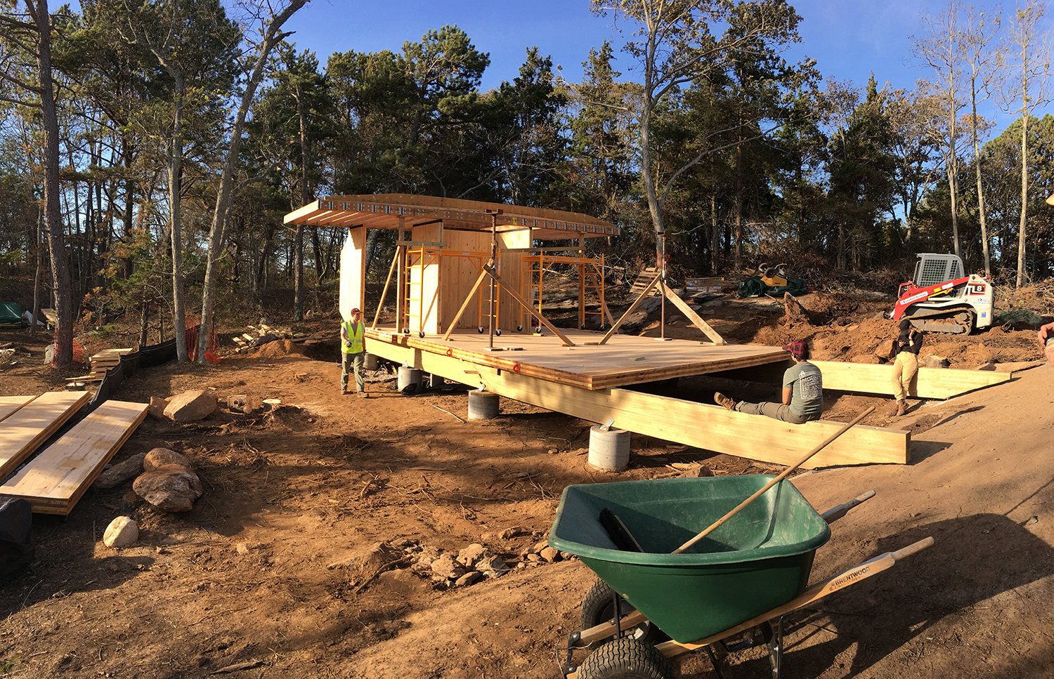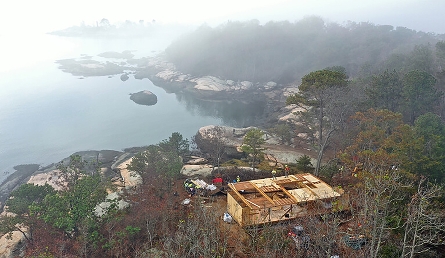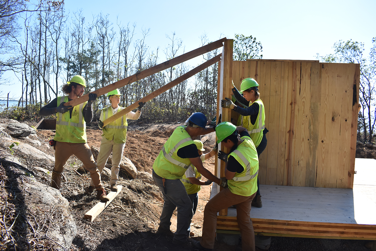 protected island in the Thimble Island archipelago, the design and construction of this teaching and coastal research center required a regenerative, sustainable approach to material sourcing, construction methodologies, and energy systems. The design and construction process moved between island and mainland—many components were prefabricated, then shipped and assembled in the field to reduce our impact on the site. The logistical challenges involved in island design led to innovation in construction details and assembly systems.